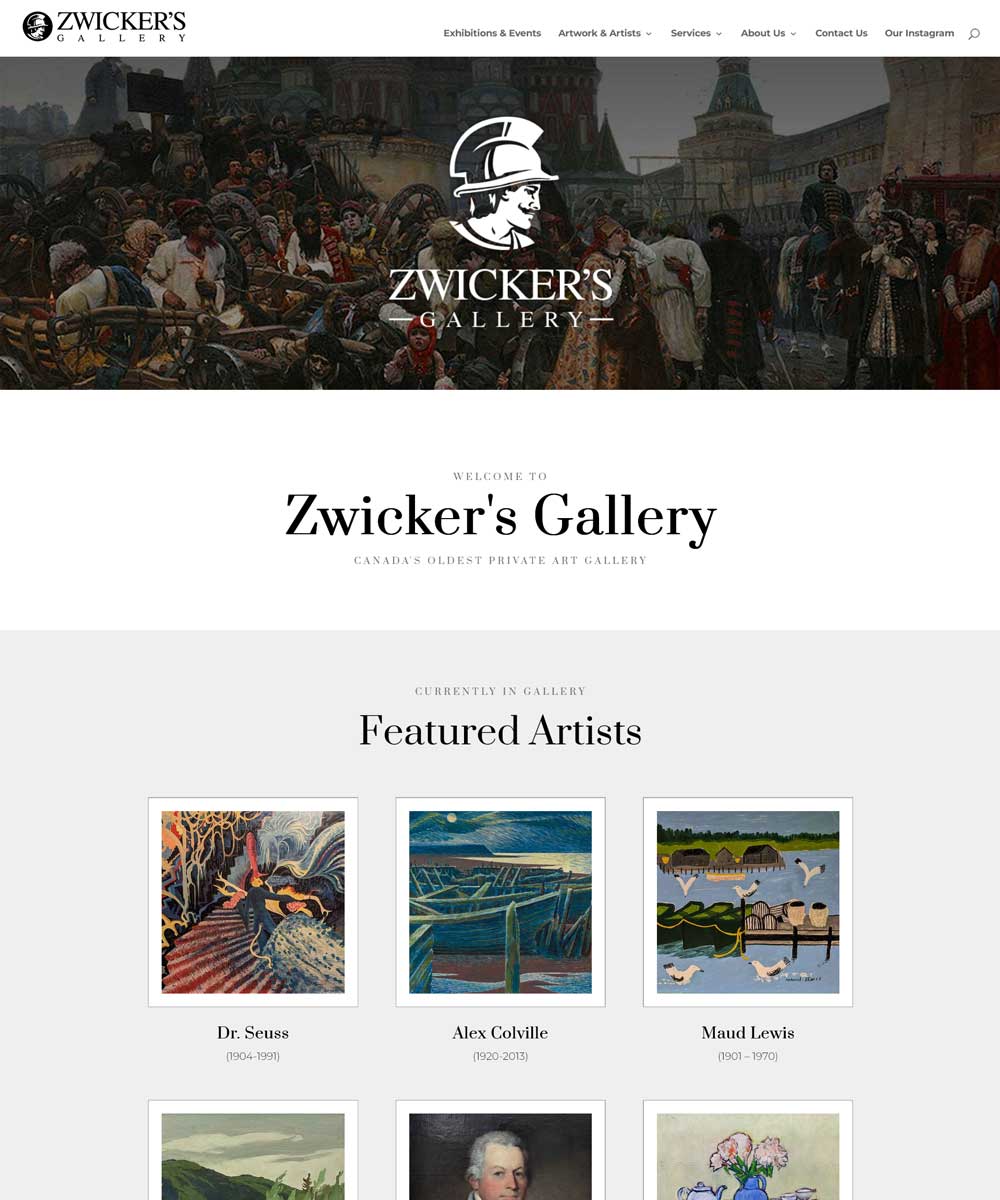Zwicker’s Gallery is a small independent art gallery in Halifax, Nova Scotia. It is a family-run business and one of the most reputable galleries in Canada. The gallery needed a refresh on it’s overall image, to bring it up into the modern age of social media and internet-based marketing, so I started with a new logo and went from there, making sure to keep the overall style and aesthetic of the site minimal so that it did not interfere with the artwork being showcased.